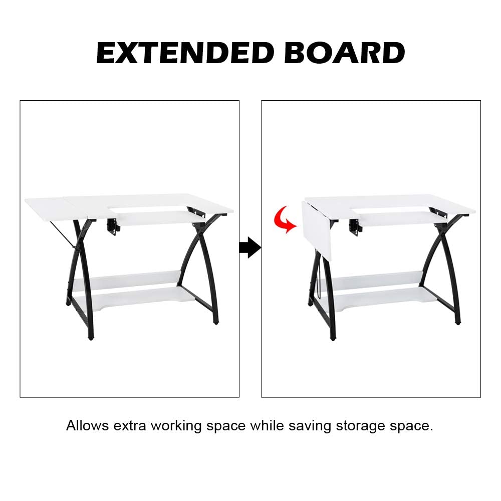 Amazon Com Tuffiom 46 Inch Sewing Craft Table Specialized Sewing Machine Shelf Enlarged Cutting Space Sturdy Multifunctional Computer Desk With Storage Adjustable Height Ideal For Home Indoor Use Arts Crafts Sewing